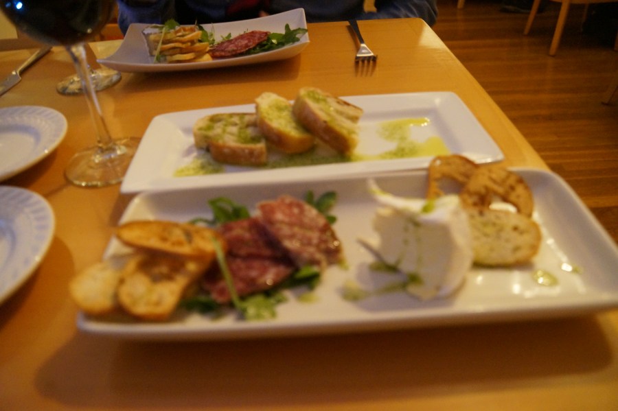 Black Truffle Salami w/goat cheese, Mache, Bar Harbor