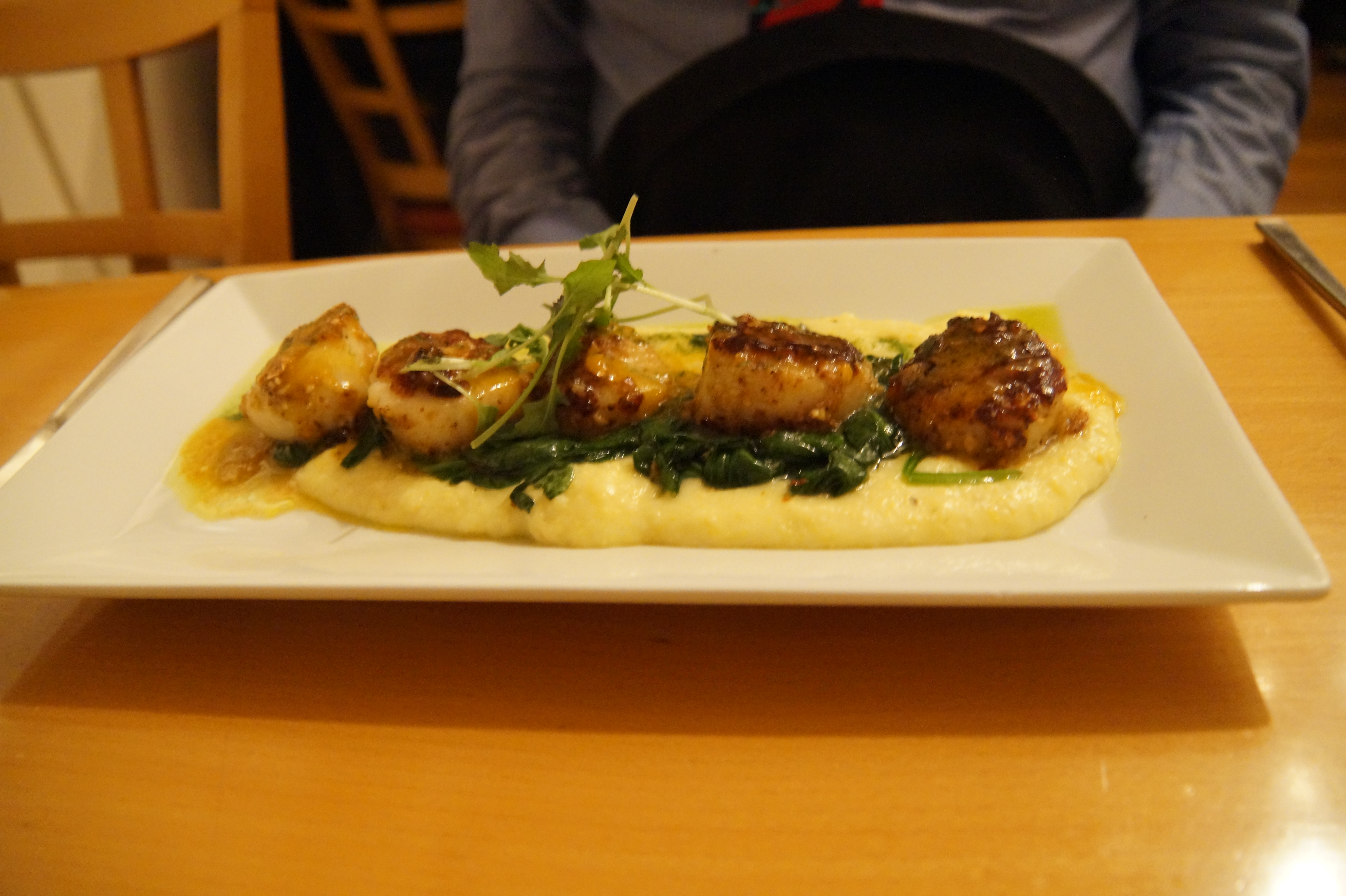 Mache Grilled Scallops on polenta with smoked tomato gravy